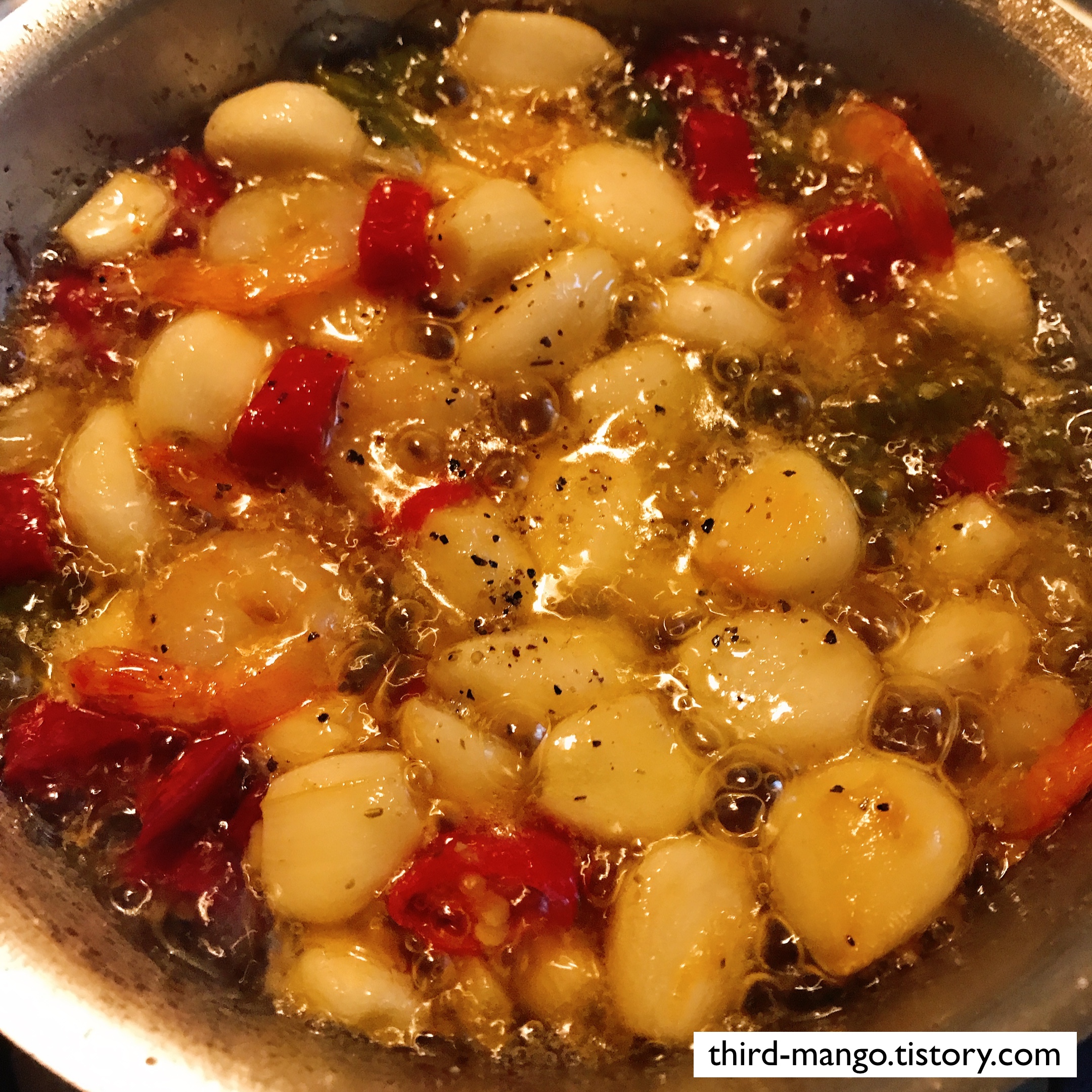 들어간 것은 올리브유, 통마늘, 칵테일 새우, 허브맛솔트, 청양고추다섯개가 전부입니다.